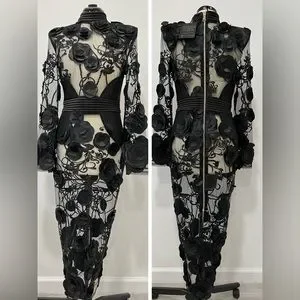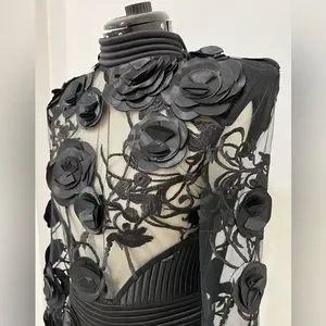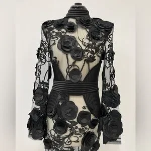 From the Battle Lines Collection. ZHIVAGO's long sleeve Vendetta dress boasts a semi-sheer construction and tonal floral appliqués.