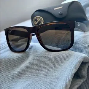 One up your game with the Ray-Ban Justin, one of the coolest looks in the Ray-Ban collection now with polarised lenses. Inspired by the iconic Wayfarer model, Justin offers a bold rubber finish to give a special touch to your style. Choose from solid or contrasting color frames and perfectly glare free polarized lenses. Look as good as you see on this unique upgrade to a Ray-Ban.