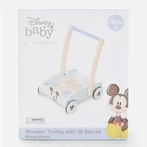 Suitable for 10 months + this cute Disney’s Mickey Mouse wooden trolley toy will make the perfect addition to their play collection. When they’re up on their feet they’ll love pushing this trolley around the house, delivering the blocks inside as they go! The four wheels feature the silhouette of Mickey Mouse himself, plus the trolley is painted in a gorgeous blue hue. With 28 wooden blocks included, there’s plenty to build, organise and entertain little ones!