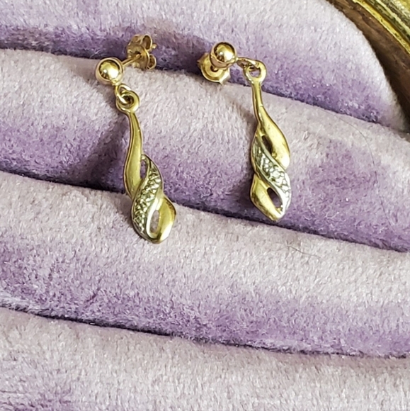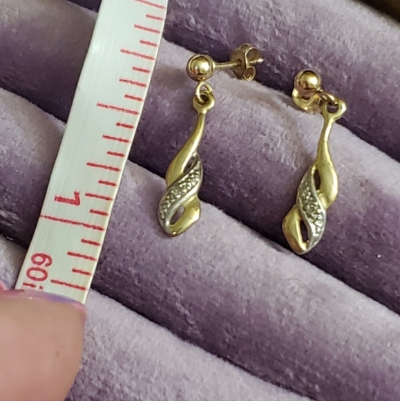 9k (375) gold diamond earrings. Stamped 375 on the posts and also on the backs.