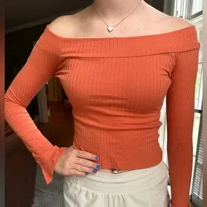 Silent + Noise from Urban Outfitters Off the shoulder orange ribbed top Size Small Never worn