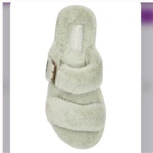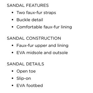 Designed for endless wearability, this ultra-plush slide sandal has been crafted from a duo of faux fur straps for ultimate comfort. Finished with decorative buckles, an edgy sawtooth sole offers indoor/outdoor ease via durable, EVA foam.