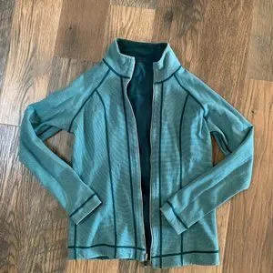 Women's Teal Solid/ Teal & Blue Striped Reversible Long Sleeve Jacket with Zip