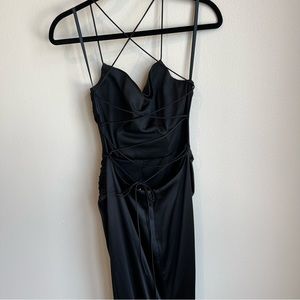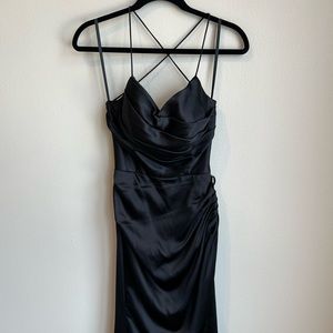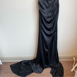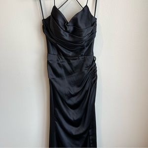 Lauren Ashley Black Satin Cowl Bodice Gown with Slit, Size 2