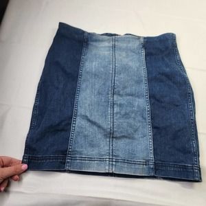 Free People Size 10 Womens Stretch Denim Femme Color Block Mini Skirt Dark Blue