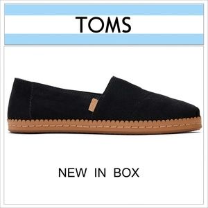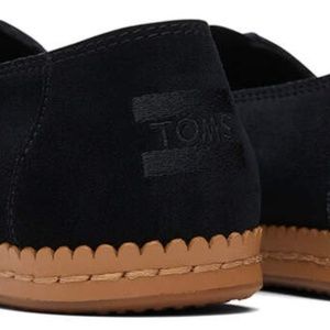 TOMS Alpargata Leather Wrap Shoes Black Suede Slip On Loafers Flats NIB