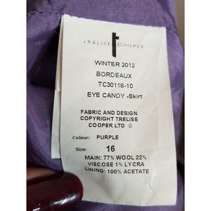 Treslise Cooper Size 16 Purple Wool Blend Frill Office Pencil Straight Skirt