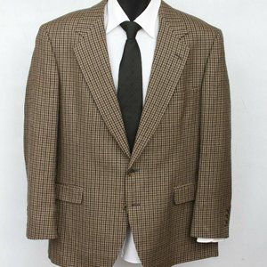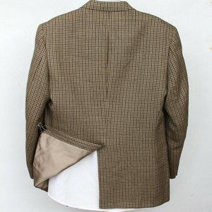 John Alexander Brown Lambs Wool Houndstooth Single Vent Sport Coat Men's Size 42 R