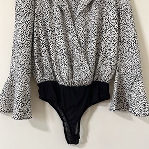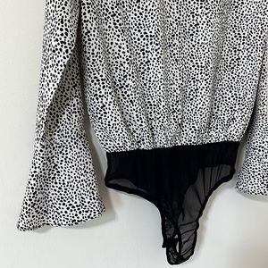 Lulus Always Lovely Ivory And Black Print Long Sleeve Bodysuit Size Small