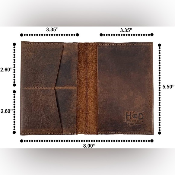 This amazing Passport Wallet is made by Hide & Drink. Their leather products are handmade from rustic, durable, Full Grain Leather. The Full Grain Leather comes from the top layer of the hide, and has all the natural full grain characteristics of the hide...hence their company name. It's the best leather you can buy and the only leather that this company uses.