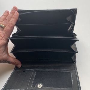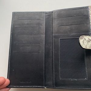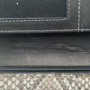 Lovely snakeskin wallet in very good preowned condition. Not sure if it’s real snakeskin or faux, but it looks real since the scales are separate (see last photo); it’s marked both made in Italy and made in India. Is also marked Vera Pelle and Vero Rettile. My sense is that the interior is made in India and the exterior in Italy? Lots of pockets and sections for all your stuff!