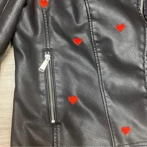 💔 Heart Embroidered Faux Leather Moro Jacket 💔