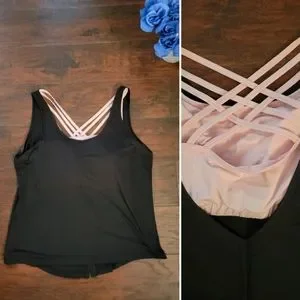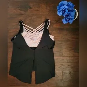 Pro Player black athletic top, built-in criss-cross back sports bra, Size Large