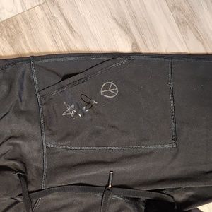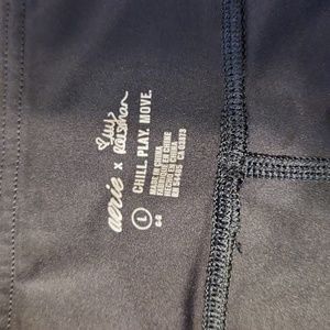 Aerie X Aly Raisman pocket front black high waist leggings with functional drawstrings.