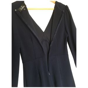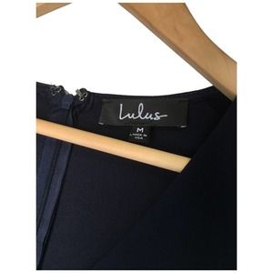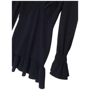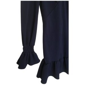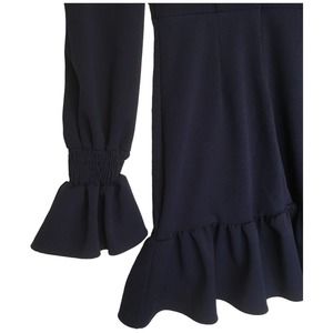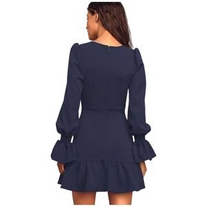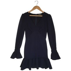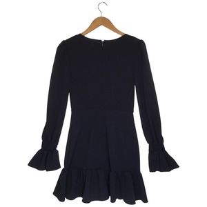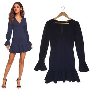 Lulus Womens Medium Style And Flare Ruffled Long Sleeve Mini Dress Navy Blue