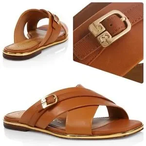 Tory Burch Delaney Crisscross Flat Slide Sandals