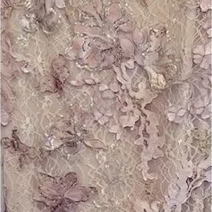 Floral lace; floral detail at shoulder; beaded at waist