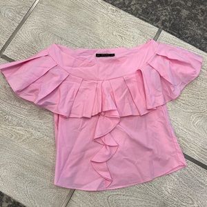 Small white pinkish stain as shown in the picture. Not very noticeable.