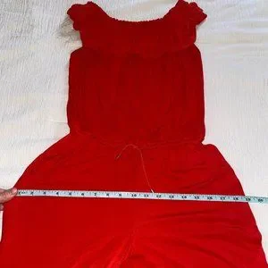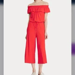 Lauren Ralph Lauren Ruffled Off The Shoulder Wide Legged Cropped Jumpsuit