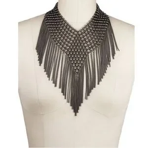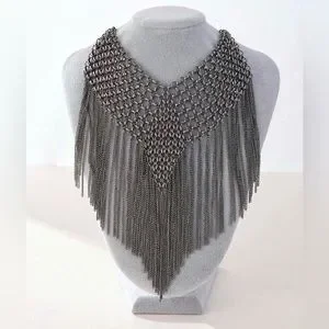 New Maximalist Chainmail Style Fringe Bib Statement Necklace