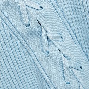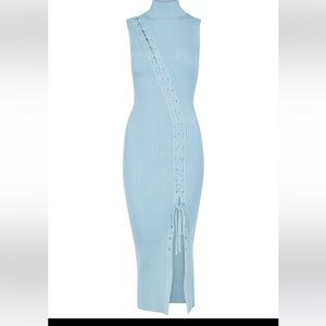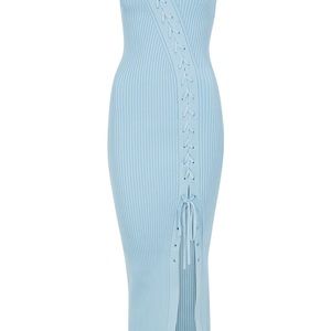 JONATHAN SIMKHAI Ava Blue Lace-Up Stretch-Knit Midi Dress