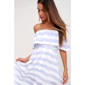 Lulu's Transatlantic Voyage Blue and Ivory Striped Midi Dress Size S