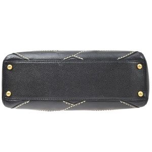 Condition: Good. Moderate creasing on exterior and handle, minor wear on base corners. Darkening and wear on exterior and handle stitching, stains and wear in interior, scratches and discoloration on hardware. Accessories: Dust Bag Measurements: Handle Drop 7", Height 9", Width 13.5", Depth 5" Designer: Chanel Model: CC Stitch Shoulder Bag Caviar Medium Exterior Material: Leather Exterior Color: Black Interior Material: Fabric Interior Color: Black Hardware Color: Gold Brand Code: 9566499 Clair Code: HB.CH.CSTS.CAV.ME Item Number: 54578/1