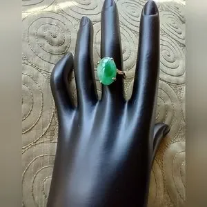 Beautiful Jade Oval 16x12mm large center stone set in 14k gold. Excellent Condition never been used. see photos for measurement and descriptions please