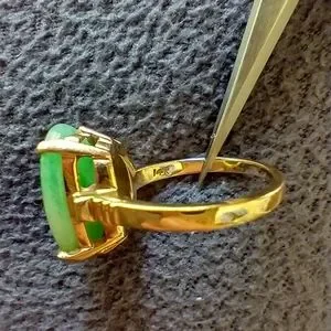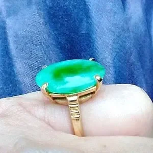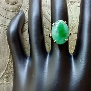 Ring 14k gold Jade Stone Large Oval 16x12mm Jade Ctr stone