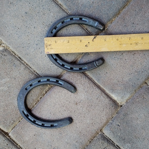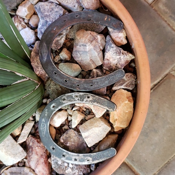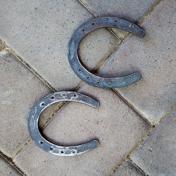 Hang for southwestern, western, ranch, farmhouse, or rustic decoration. Or, simply for good luck! One has a bit of rust on the backside.