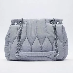 NWT. Zara Blue Pinstripe Quilted Shoulder Bag with silver chain and hardware, lined interior, interior pocket, magnetic closure. 14" X 11" X 3". Ref. 6655/710.