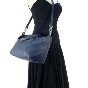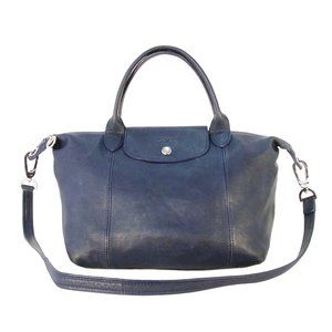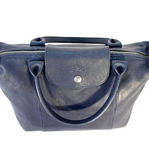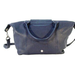LONGCHAMP Le Pliage Cuir Navy Lambskin Leather Cross Body Bag - $565