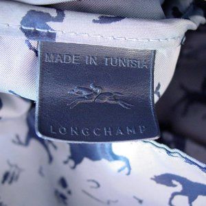 Rich leather and impeccable topstitching give a refined aesthetic to Longchamp's iconic Le Pliage shoulder bag. Branded with an equestrian logo. Has rolled leather top handles and a detachable cross body leather strap. Roomy main compartment has a zip pocket and two slip pockets. . Made in Tunisia. Retail: $565.