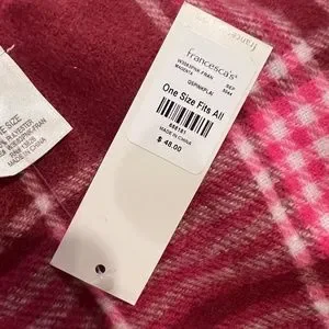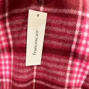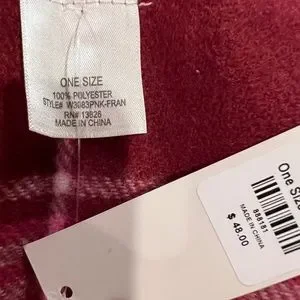 Francesca Pink/Magenta Plaid Shawl w Fringe at Bottom 100% Polyester NWT OS Shawl is brand new with tags, Just a soft cozy stylish Shawl. Still in stores for $48