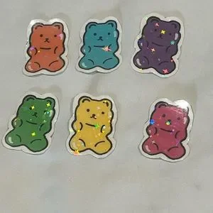 Gummy, bear, holographic stickers comes with 6 gummy bears small
