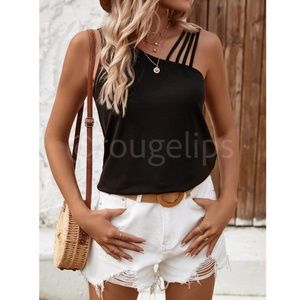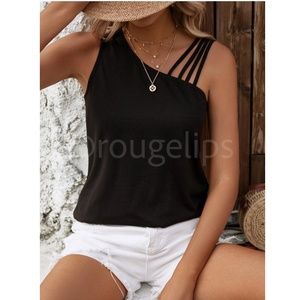 Strappy Black Tank Top Asymmetric Neck Stretchy