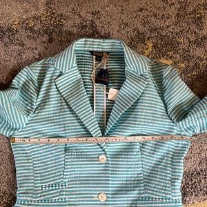 NWT Summer weight 100% cotton Brooks Brothers jacket. Lovely hem details. 3/4 sleeves. Slightly cropped fit. Two front pockets. Extra buttons.