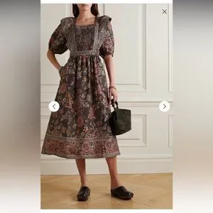 Photos from NetAPorter. Worn 2x - excellent condition. Fabric is antiqued - faded with designer’s intent. Adorable puff sleeves, flattery tie for fit and sexy lace up back. Size 4.