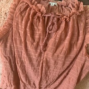 Beautiful Max Studio sleeveless ruffled blouse. It is a great blush/ peach color and lined!