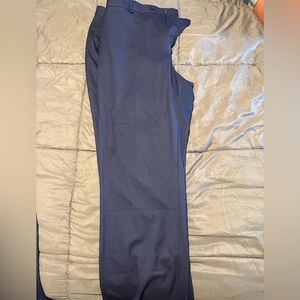 Worn to a few job interviews. Like new, navy blue, slim fit, smoke free. Jacket is 46R slim fit and pants are 38W 30L slim fit.