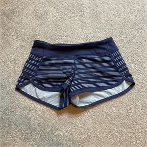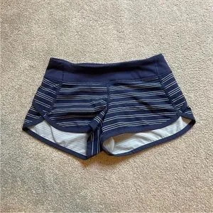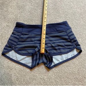 ivivva lululemon Shorts Girls Youth 8 Blue Stripe Pull On Lightweight Zip Run