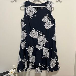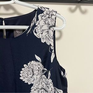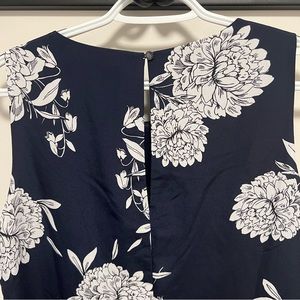 Perfect professional wear or for a casual day dress! Dress is sleeveless and closes in the back with a button. Super flattering around the waist, and ruffles at the bottom!