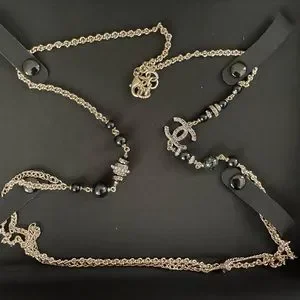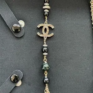 New Chanel Long Gold-tone Necklace with Resine Beads