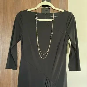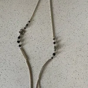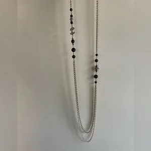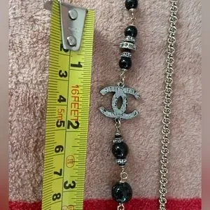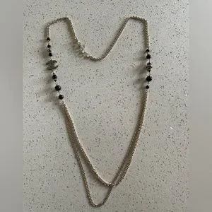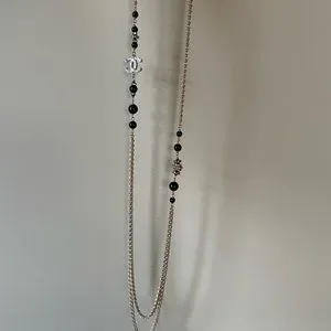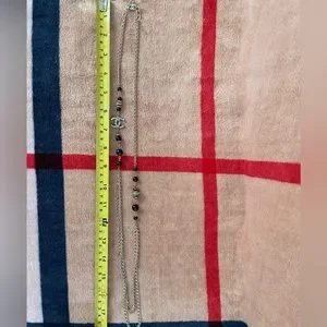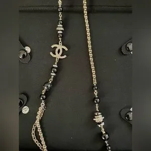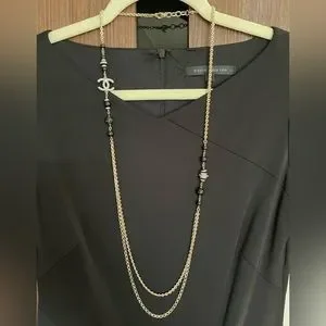 Authentic Chanel 36” long necklace with subtle design perfect for day-to-night look. Gold tone with gunmetal tone Chanel logo. Never worn. Bought in NYC Chanel SOHO boutique. Made in France.
