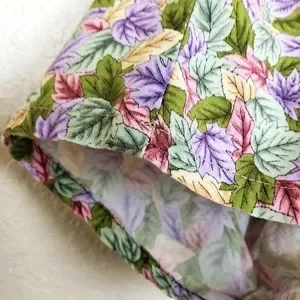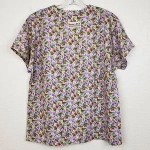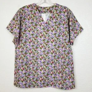 Cotton Club Scrub Top Multi-Color Leaf Pattern V-Neck 100% Cotton - Size Medium