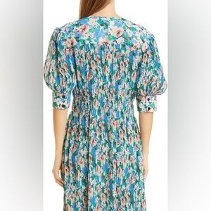 GANNI floral print smocked plisse georgette mini dress