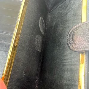 Interior: sticker residue inside coin pocket.