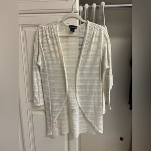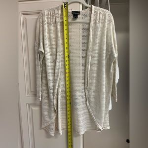 Kristin Nicole Women’s 1X crochet lace open knit open front cardigan cream ivory