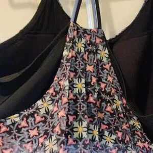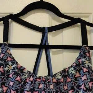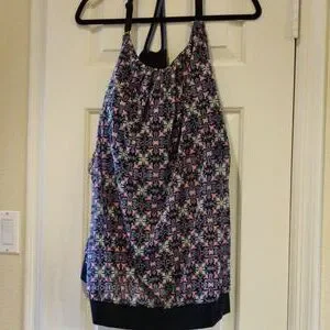 Tankini with built in no wire bra underneath. It has a thick waistband and nice adjustable straps at the top.