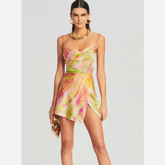 this show stopping palm leaf design silk dress is from Retrofete. perfect for spring and those warm summer nights.
